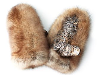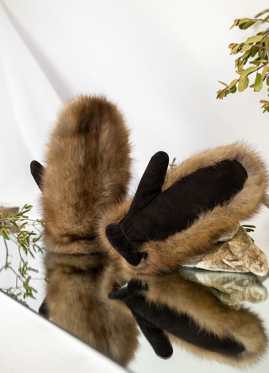 Данные рукавицы выполнены из меха соболя, ладонная часть - натуральная замша, могут быть декорированы вышивкой бисером.