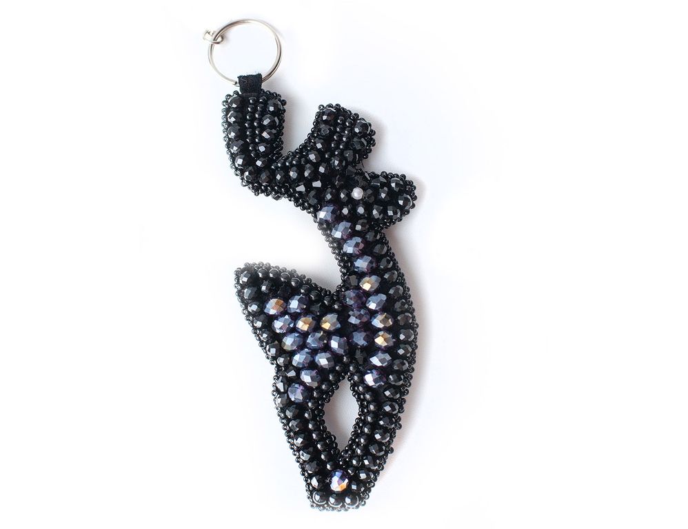 Брелок ручной работы, выполнен из бисера и кожи, цвета в ассортименте.