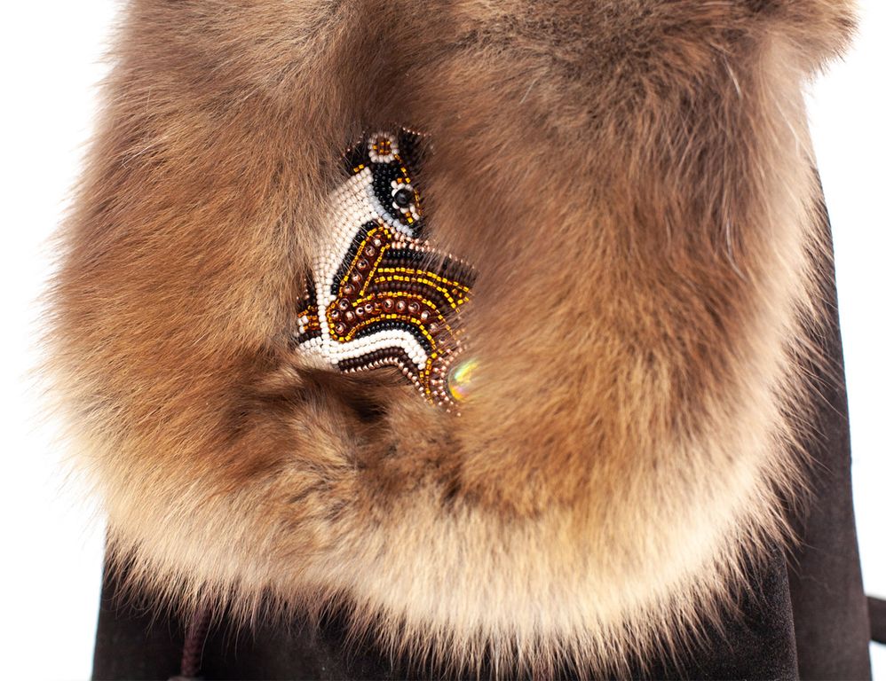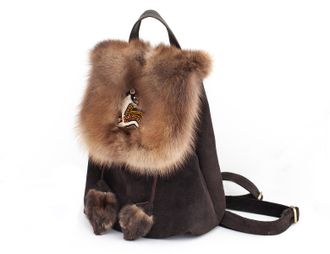 Рюкзак из натуральной замши, с мехом соболя, украшенный вышивкой из бисера (модификация 1) 23000 руб. В корзину