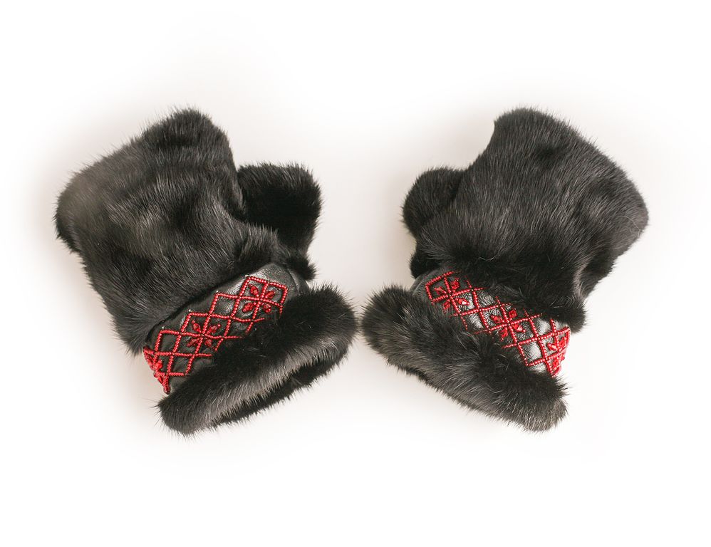 Митенки из натуральной меха норки, вышивка бисером 14000 руб. В корзину Митенки из меха норки, цвет черный, ладонная часть - наруальная кожа КРС, отделка - ручная вышивка бисером. Митенки из меха норки, цвет черный, ладонная часть - наруальная кожа КРС, отделка - ручная вышивка бисером.