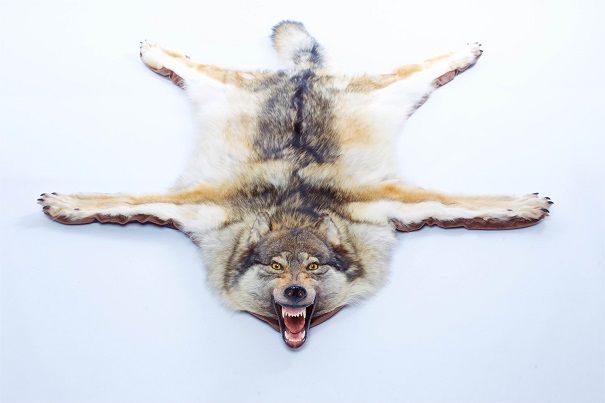 Ковер из шкуры волка, размер в длину 150 - 160 см (без хвоста), подклад искусственная замша, проложенная стеганым синтепоном. Этот мягкий теплый ковер послужит прекрасным украшением вашей охотничей комнаты.