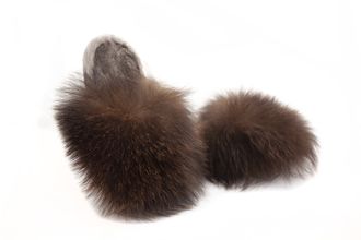 Мужские тапочки, материал верха - мех медведя натуральный, неокрашенный, материал подошвы - кожа и замша, стелька подошвы отделана натуральным стриженым мехом бобра, что дает приятные тактильные ощущения.